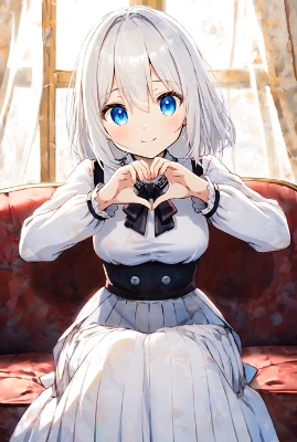 Odd eyes だけじゃダメだったので、Heterochromia を手前に追加して配置で生成 今度は金髪にならず、いつもの銀髪になるという不思議🤔