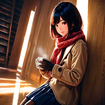 She is an anime girl with blue hair, bob cut, blue eyes, 18 years old, high school student, small chest, slender build. She is participating in an autumn camp at a campsite where the leaves are beautiful in autumn. She is wearing a denim jacket, a white long sleeve T-shirt. She is wearing black leggings and a red and black checkered scarf. She is wearing brown ankle boots and a blue knit hat. At camp, I can imagine her roasting marshmallows with her friends by the bonfire and enjoying hot cocoa.