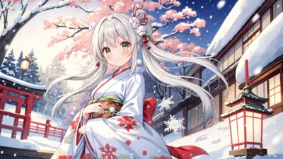 (masterpiece), (best quality), (ultra detailed), (summer festival:1.5), (night market:1.4), (crowded street:1.3), (food stalls:1.2), (illuminated stalls:1.1), (festival atmosphere:1.0), (night scene:1.4), (summer night:1.3), (cinematic lighting:1.1), (soft ambient light:1.0), (realistic shadows:1.0), (warm light:0.9), (vibrant colors:1.1), (anime character:1.5), (cute anime girl:1.4), (moe:1.3), (kawaii:1.4), (beautiful detailed eyes:1.3), (glowing eyes:0.9), (large eyes:1.3), (sparkling eyes:1.0), (gentle light in eyes:1.1), (fireworks reflecting in eyes:1.3), (cute:1.4), (adorable:1.3), (charming:1.2), (smiling:1.1), (happy:1.0), (looks much younger than age:1.3), (innocent face:1.1), (anime face:0.9), (round face:0.9), (soft cheeks:1.0), (plump cheeks:0.8), (soft facial features:1.1), (pretty face:1.4), (kawaii face:1.4), (solo), (long silver hair:1.2), (emerald eyes:1.2), (shiny hair:1.0), (petite frame), (slender body), (well-proportioned breasts:1.1), (natural breasts:1.0), (slightly larger breasts:0.9), (average sized breasts:0.5), (large breasts:0.5), (yukata:1.5), (summer kimono:1.4), (floral pattern:1.3), (obi:1.2), (hair ornaments:1.1), (barefoot:0.8), (walking:1.3), (looking up at the sky:1.2), (eating:1.3), (holding candied apple:1.2), (paper lanterns:1.3), (festival decorations:1.2), (game stalls:1.1), (fireworks:1.6), (colorful fireworks:1.5), (sparkling fireworks:1.4), (fireworks in the sky:1.3), (medium shot)