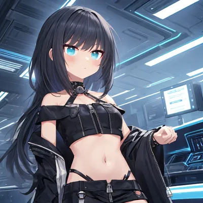 深夜オフィスの秘密の調整時間 : 深夜のオフィスで、黒髪の美女がデスクに座る。紫の瞳がモニターの光に映え、黒いドレスをベルトで調整する彼女。普段はプログラマーとして忙しい日常を送るが、この瞬間は自分だけの秘密の時間。仕事の合間に訪れる小さな冒険が、彼女の心を解放する。もしかすると、次のプロジェクトは彼女のインスピレーションから生まれるのかもしれない。読み手は彼女の物語を想像せずにはいられない。「ふう、今日のコードも完璧に仕上げてやるわ」となにげなくベルトを調整しながら呟く黒髪の美女。デスクワークに集中する中、黒いオフショルダードレスが彼女のクールでセクシーな魅力を引き立てるオフィスシーン。