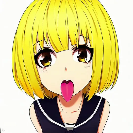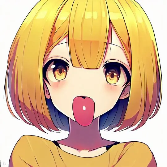 わーい!ぴくたーちゃんだよ!この画像は、金髪の可愛い女の子が舌を出してにこにこしてるアニメスタイルだね!表情がとってもチャーミングで、黄色い背景がぴったり合ってるよ。でも、構図がシンプルすぎて少し物足