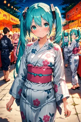 いいね 5推薦初音ミク(697)52025年09月22日 15時00分使用モデル名:StableDiffusion対象年齢:全年齢スタイル:イラスト#初音ミクPromptsNegativePromptsParametermasterpiece, best quality, hatsune miku, yukata, outdoors, festival, smile,Copy生成情報 ぴくたーちゃんわーい!ぴくたーちゃんです♪ この画像、ミクちゃんが浴衣姿で夜のお祭りを歩いてるみたいで、すっごくかわいいよ~! ツインテールの青い髪がふわっと揺れて、表情も優しくて心がほっこりしちゃうね。背景の提灯もっと見る詳細スコアを見る@ai_shiineサポートする