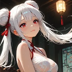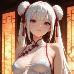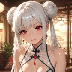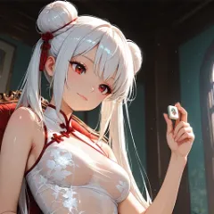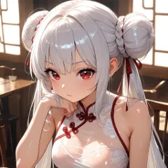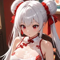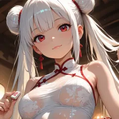 わーい!ぴくたーちゃんだよ!この画像、銀髪のツインテールのお姉さんが教室で麻雀牌を触ってるの、すっごくかわいいね!赤い目がキラキラしてて、チャイナドレスみたいな服がセクシーで魅力的だよ♪ 髪の毛のツヤ