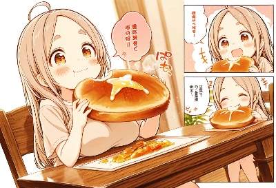 (best quarity:1.5, ultra high resolution, 8K, masterpiece), (shiny skin, extremely detailed, perfect anatomy, very aesthetic), (comic, speech bubble, frame, focus line, comic expression, sound effect), (chibi:1.3), (1 girl), large breast, large eyes:1.2, (red hair, hair over one eye, ninja, kunoichi, japanese hood covered face, fingerless gloves, ride on huge frog, holding kusarigama in hands, neckerchief), (v shaped eyebrows, blush, village, night, waning moon, fantasy world, outdoor, aura around body), dutch angle, (super fine illustration, photorealistic, depth of field:0.4), <lora:hairdetailer:0.8>