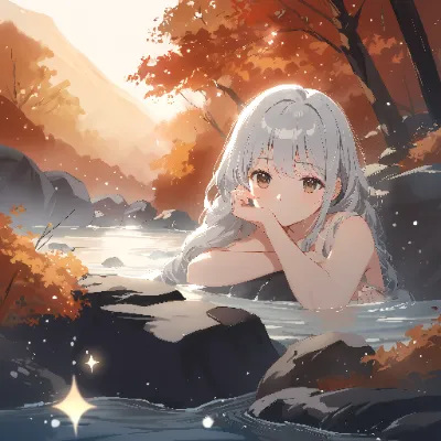 この画像は、銀髪の少女が古い図書館で本を読んでいる様子を描いたアニメスタイルのイラストです。少女の優しい笑顔と紫色の瞳が可愛らしさを強調しており、キャンドルライトの柔らかな照明が幻想的な雰囲気を生み出