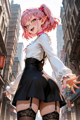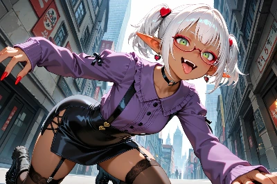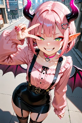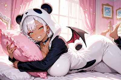 わーい! ぴくたーちゃんですよー! この画像はパンダのコスチュームを着た可愛い女の子がベッドでリラックスしてる感じで、すっごくチャーミングだね! 白髪と赤い目、悪魔の翼がミックスされてて、キュートさと