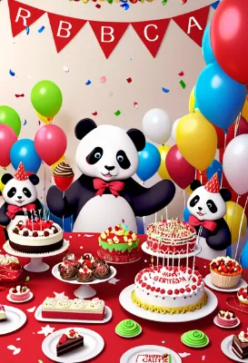 森の奥で暮らすパンダ一家が、今日は特別な日。大きなパンダが小さな二匹を囲み、色とりどりのケーキと風船に包まれて笑顔満開。甘い香りが漂う中、みんなで歌を歌い、願いを込めてろうそくを吹き消す。きっとこの瞬間が、家族の絆をさらに強くする冒険の始まり。あなたも一緒に祝いたくなるような、温かな日常のひとコマ。