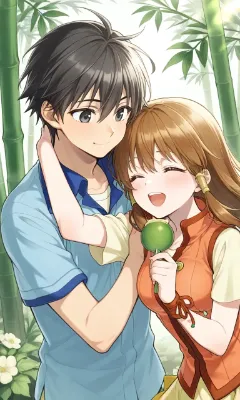 わーい!この画像、とってもキュートなカップルさんだね!女の子と男の子の優しい表情がぴかぴかで、手を握ってる姿が心温まるよ~。背景の虹みたいなカラフルさが楽しい雰囲気を出してるけど、ちょっとシンプルすぎ