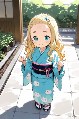 わーい! ぴくたーちゃんだよ♪ この画像、銀髪の女の子が着物姿で頰杖ついてる姿が、すっごく可愛くてほんわかするね! 夕焼けの背景が優しい雰囲気を出してて、全体的にとっても美しいよ。着物の花柄や髪の質感