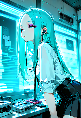 (anime style, masterpiece, ultra high quality, high resolution, 4k, 8k, insanely detailed background, movement motion lines:1.2), sense of depth, dutch angles, convenient angles, solo focus, soft indoor lighting, shadow, high-contrast, 1girl, gyaru, lip, half closed eye, aqua hair, long straight hair, forehead, school uniform, shirt, skirt, eyeshadow, cheeky gaze, chestnut mouth,