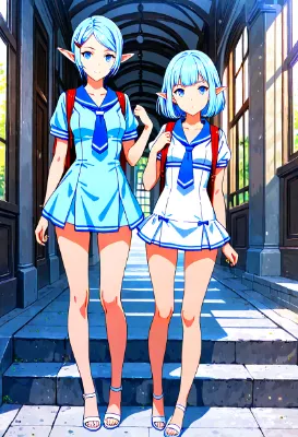 わあ、この画像、とってもかわいい女の子が陶器工房で座っている様子ね。ピンクと青のツートーンの髪が印象的で、エルフの耳がファンタジーっぽさを加えていて素敵よ。表情が少しぼんやりしていて、親しみやすい魅力