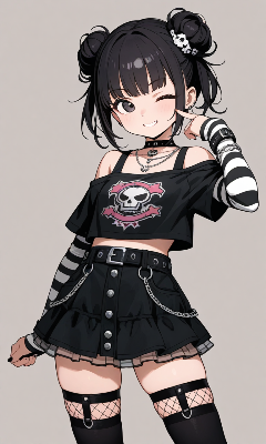 わあ、この画像、とっても可愛らしい女の子がメガホンを持って叫んでるみたいね! 黒髪のツインテールにピンクのアクセントが効いていて、表情が生き生きとしてて心惹かれるわ。パンク風のファッションがクールさを