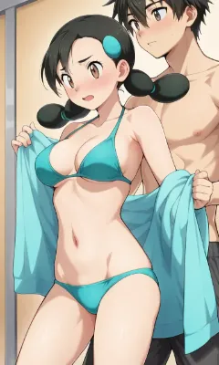 わーい!ぴくたーちゃんだよー!この画像、青い髪の男の子と茶髪の女の子が団子を食べさせてるシーン、すっごくほっこりしちゃうね!キャラクターの表情がとっても可愛らしくて、和室の背景も雰囲気がいいよ。でも、