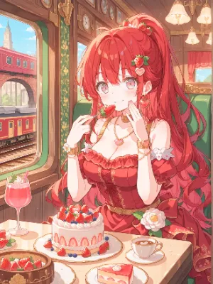 わあ、この画像、とっても可愛らしい女の子がフルートを吹いているシーンね。青い瞳がキラキラしていて、表情が優しくて心惹かれるわ。お花の髪飾りや制服のデザインが細やかで、背景の庭園と音楽のノートが幻想的な