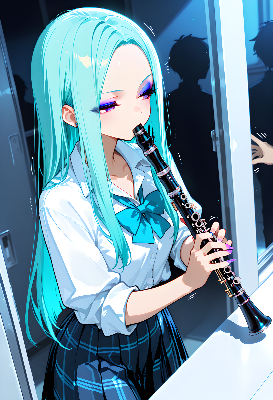 (anime style, masterpiece, ultra high quality, high resolution, 4k, 8k, insanely detailed background, movement motion lines:1.2), sense of depth, dutch angles, convenient angles, solo focus, soft indoor lighting, shadow, high-contrast, 1girl, gyaru, lip, half closed eye, aqua hair, long straight hair, forehead, school uniform, shirt, skirt, eyeshadow, cheeky gaze,
