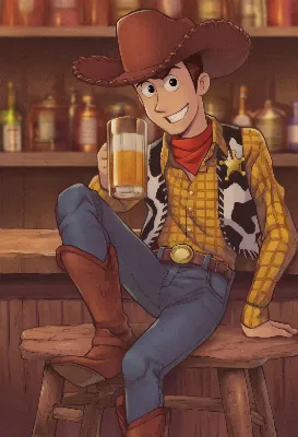 {{{highly detailed}}}, {{official style}}, {100-layer}, {{{{ultra-high resolution}}}}, {{{hi-vision anime}}}, {{intricate}}, 1boy, solo, toy story, {{woody pride}}, black eyes, brown hair, very short hair, forehead, flat chest, happy, sitting, {{{official costume, cowboy brown hat, red scarf, cow-print vest, collared yellow tartan shirt, brown belt, blue long pants, boots}}}, {{holding a beer mug}}, bar, indoor, {{{masterpiece}}}, {{{best quality}}}, {{{very aesthetic}}}, {{{ultra-detailed}}}, {illustration}, {{{extremely detailed}}}, {{{an extremely delicate and beautiful}}}
