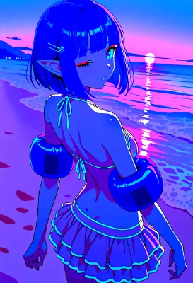 あら、この画像、とってもかわいいわね!黒髪のツインテールにエルフ耳がついた女の子が、ボクシンググローブを着けてポーズを取っているの。ゴシックロリータ風の衣装がキュートで、赤いグローブがアクセントになっ
