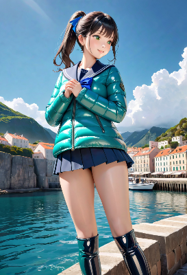 防水仕様のセーラーダウン制服