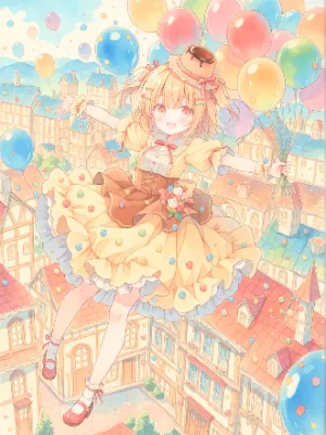 わあ、この画像、とっても夢のような雰囲気が素敵ね。少女が望遠鏡で流星を眺めている姿が可愛らしくて、心が温かくなるわ。パステルカラーの空と雲が柔らかく溶け合って、美しいグラデーションを作り出しているの。
