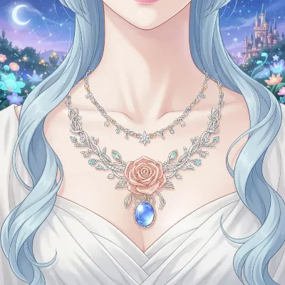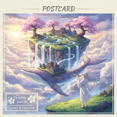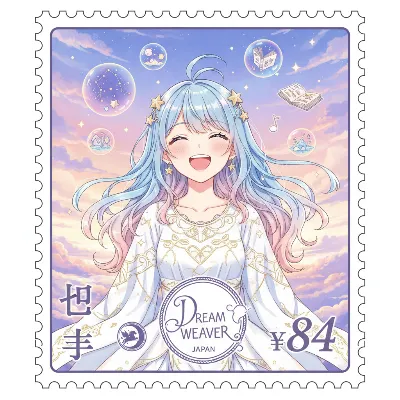 暗闇に包まれた夜空から、優しい光をまとった金髪の天使が舞い降りる。頭上のハローと白い翼が輝き、花の髪飾りが風に揺れる。彼女は人間界の守護者として、孤独な魂に寄り添う使命を帯びている。穏やかな青い瞳が、希望の物語を語りかける。どんな奇跡がこの出会いから生まれるのか、想像は無限に広がる。