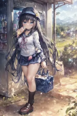 (masterpiece, top quality, best quality, official art, beautiful and aesthetic:1.2), (1girl,cute:1.5), extreme detailed, colorful, highest detailed ((ultra-detailed)), (highly detailed CG illustration), ((an extremely delicate and beautiful)),(8k photo quality,ultimate shiny skin, detailed skin, ultimate detailed face),(outdoors, ocean, on the sea, big wave, black hair, super long twintails, blue eyes, narrow waist, huge breasts, ribbon choker, light particles, lens flare, depth of field, sparkle, bokeh, dappled sunlight, day, front tie bikini top, checkered swimsuit, side tie bikini bottom:1.4), smile (dynamic angle, dutch angle, full body, looking at viewer( onboard), surfing:1.5),<lora:flat2:-1>,