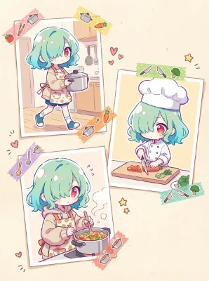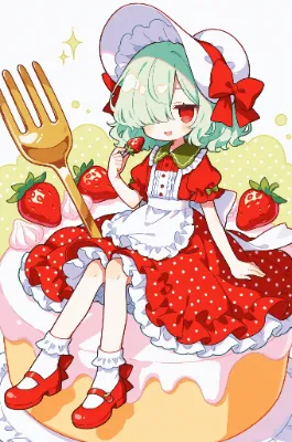 夜空に浮かぶ巨大な三日月の上で、緑髪の少女がゆったりと座る。彼女は月の守護者として、星々のささやきに耳を傾けながら、地上の夢を紡ぎ出す。白いドレスが風に揺れ、赤い瞳が遠い記憶を映す。この静かな瞬間は、彼女の冒険の始まり。やがて朝が来る前に、どんな物語が生まれるのだろうか? ※少年 1番月に近い場所でお月見……なんか持ってる 月!