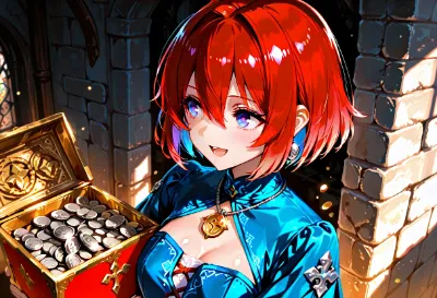 わあ、この画像、とっても神秘的で魅力的な雰囲気ね! 白いローブをまとった女性が教会のような場所で跪いている後ろ姿が、幻想的で心を惹きつけちゃうわ。冠のようなヘッドピースや十字架のデザインが神聖さを演出