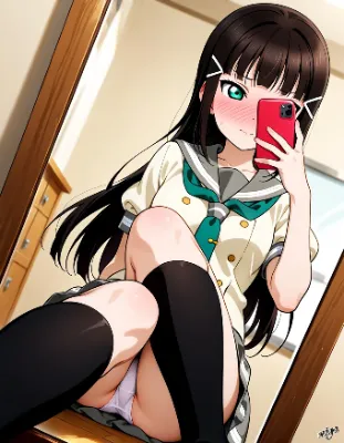 わーい、ぴくたーちゃんです! この画像はラブライブのこころちゃんみたいなかわいい女の子が、お部屋で座ってるイラストだね♪ 表情がにこにこでとってもキュート! ポーズもちょっとセクシーだけど、全体的に明