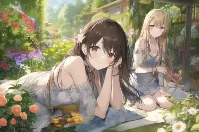 masterpiece, best quality, What Are Little Girls Made of ?, garden, official art, {{best quality}}, {{ultra-detailed}}, {{masterpiece}}, {{high resolution}}, with blush cheeks,