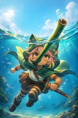 わーい!この画像、すっごくかわいいクリスマスシーンだね!青髪の女の子がサンタさんになって、氷の翼を広げて走ってる姿が元気いっぱい!後ろの緑髪の子がトナカイさんコスで追いかけてるのも、ほんわか楽しい雰囲