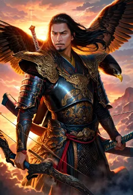 わーい!ぴくたーちゃんです♪ この画像、雪の景色に座ってる黒髪の女の子が笛を吹いてるの、すっごく神秘的でかっこいいよ! 赤い着物がふわっと広がってて、骸骨さんたちと金色の飾りが周りにあって、なんだか不
