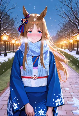 グラスちゃん和服似合うからという事で。馬もグラスワンダー号にしたかったけど…無理でした。