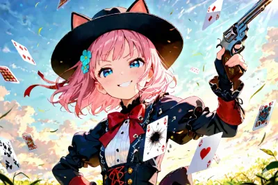わーい! ぴくたーちゃんです♪ この画像、キツネ耳の女の子がちっちゃい馬さんにニンジンあげてるの、すっごくかわいいよ! ピンクの服がふわふわで、春の森の背景に桜みたいな花びらが舞ってるのがとってもキュ