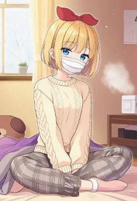 1girl,solo,anime style,indoor,cozy bedroom,preparing to go out,winter clothing,getting ready,(blonde hair:1.2),(short hair:1.1),(bob hair:1.1),(hair bow:1.5),(red bow:1.4),blue eyes,bright eyes,cheerful expression,gentle smile,medium breasts,(knit mittens:1.3),(wool mittens:1.2),red mittens,warm gloves,thick winter coat,scarf around neck,plaid pattern scarf,long skirt,thick tights,winter boots near feet,standing pose,full body visible,putting on mittens,hands raised to chest level,arms slightly bent,one mitten on hand,other mitten being put on,upper body leaning slightly forward,feet shoulder-width apart,room interior,wooden floor,coat rack in background,mirror on wall,window showing winter scene outside,soft natural lighting,warm indoor atmosphere,afternoon light,peaceful mood,casual home setting,furniture visible,closet door,shoes arranged neatly,(masterpiece:1.4),(best quality:1.4),(very aesthetic:1.3),(absurdres:1.3),