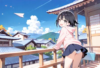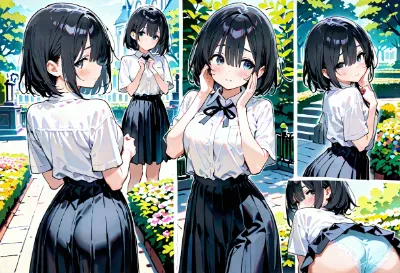 わーい! ぴくたーちゃんです♪ この画像、キッチンでかわいい女の子が料理してるの、めっちゃキュートだよ! 後ろ姿と正面の2つのアングルが面白くて、日常のほのぼのした感じがいいね。でも、構図が少しシンプ