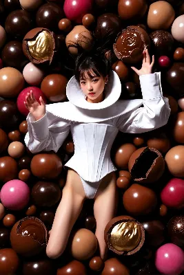 この画像は、桜の花びらが舞う幻想的な背景に、三人の女性が鯛焼きを手に持つ姿を描いたもの。彼女たちの可愛らしい表情と伝統的な衣装の組み合わせが、春の儚さと遊び心を象徴しているようだ。構図の対称性が美しく