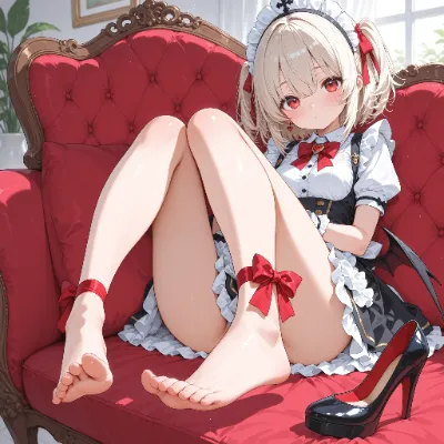わあ、この画像、とっても魅力的な女の子が描かれていて、心惹かれちゃうわね。赤いベレー帽とウサギ耳が可愛らしくて、チェック柄のベストとスカートがクラシックでおしゃれな雰囲気を出してるわ。表情が少しミステ