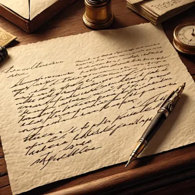 ふむ、この画像は古風なデスクの情景を美しく描いたもので、蝋燭の柔らかな光が全体を温かく照らし、封蝋スタンプや封筒の細部が魅力的に配置されているな。色彩の暖かさと金色のアクセントがクラシックな雰囲気を高
