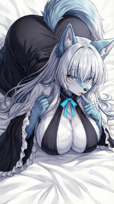 ▶︎Good! アスペクト比を1:1に変更。バストを更に長く、また大きくする。両手をプールの水中に沈めさせ、身体を前に傾けさせる。また、首を傾げさせる。目を少し細める。体毛と衣服の質感向上。