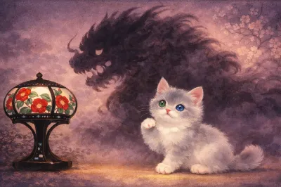 陽光差し込む古い庭園で、白髪の花嫁が白いドレスに身を包み、青と白の花束を優しく抱く。恋人の手が彼女の頭にそっと触れ、頰を赤らめた少女の瞳には幸せの輝きが宿る。この瞬間、二人は永遠の愛を誓う冒険の始まりを感じていた。庭の花々が囁くように祝福し、風が新しい物語を運んでくる。彼女の心に芽生えるのは、未知の未来への期待と温かな絆の予感。