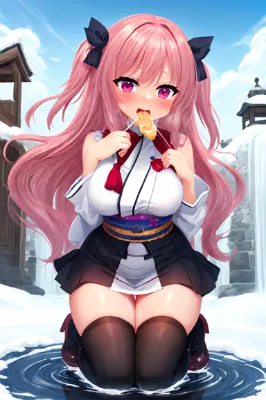 古い寺院の庭で、彼女は黄金の葉飾りを髪に挿し、白い着物に赤い帯を締めて佇む。かつての恋人が残したこの飾りは、失われた記憶を呼び起こす鍵。月明かりの下、彼女の瞳に映るのは、禁断の宴の幻影か。それとも新たな出会いの予感か。風が葉を揺らすたび、物語が息づく。 「この葉のように、静かに輝き続けたいわ」と穏やかに呟く彼女。黒髪を優雅にまとめ、金色の葉飾りが映える伝統的な装い。クールな表情に秘めた内面的な強さが感じられ、静かな場面でその魅力を発揮する。