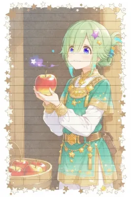 この画像は、ピンクの髪を持つ少女が華やかな衣装を着用したアニメスタイルのイラストです。全体的に可愛らしさが際立ち、柔らかいピンクの色調と装飾的なフレームが魅力的です。良い点として、キャラクターの表情が