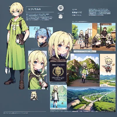 1-4枚目:character sheet with 3 views (front-side-back), ♥️, 🔒, 🧺, a heart-lock girl who stores sealed emotions inside a woven basket, wearing a vest with romance and containment motifs, standing in a neutral pose with a scroll and charm pouch, simple gray background, full body 5-8枚目:character sheet with 3 views (front-side-back), 💝, ♋, 💻, a zodiac-cancer girl who channels heartfelt energy into computers, wearing a vest with astrology and tech motifs, standing in a neutral pose with a scroll and charm pouch, simple white background, full body 9-12枚目:character sheet with 3 views (front-side-back), 🎎, 🏺, 😶, a traditional doll who silently tends ancient pottery, wearing a vest with cultural and artifact motifs, standing in a neutral pose with a scroll and charm pouch, simple white background, full body 13-20枚目:character sheet with 3 views (front-side-back), 🖼️, 🙁, 🩹, an art-restoration girl who applies bandages to sorrowful paintings, wearing a cloak with museum and healing motifs, standing in a neutral pose with a scroll and charm pouch, simple white background, full body 21-24枚目:character sheet with 3 views (front-side-back), 🍕, 🪸, 🚵♂️, a pizza-themed cyclist who rides through coral-like terrain, wearing a vest with food and adventure motifs, standing in a neutral pose with a scroll and charm pouch, simple white background, full body 25-32枚目:character sheet with 3 views (front-side-back),🥐, 🧉, 🪜, a croissant motif boy carrying a mate gourd while climbing ladders, wearing a vest with bakery and climbing motifs, standing in a neutral pose with a scroll and charm pouch, simple white background, full body 33-40枚目:character sheet with 3 views (front-side-back), 💡, 😎, 🤛, a cool-looking girl who punches with bright idea energy, wearing a cloak with creativity and combat motifs, standing in a neutral pose with a scroll and charm pouch, simple white background, full body 41-44枚目:character sheet with 3 views (front-side-back), 😄, 🐄, 📜, a cheerful girl who documents cow stories on scrolls, wearing a vest with livestock and archive motifs, standing in a neutral pose with a scroll and charm pouch, simple white background, full body 45-48枚目:character sheet with 3 views (front-side-back), 🍀,🥕,♗, clover, carrot, white chess Bishop, carrot orange hair, bishop hat, clover pin, white clothes, full body 49-52枚目:character sheet with 3 views (front-side-back), 🚜, 🐅, 🧈, a tractor-driving boy who works with a butter-slick tiger companion, wearing a vest with farming and animal motifs, standing in a neutral pose with a scroll and charm pouch, simple white background, full body 53-56枚目:character sheet with 3 views (front-side-back), 🐷, 🎧, 🪀, a pig motif girl wearing headphones and performing yo-yo tricks, wearing a cloak with music and toy motifs, standing in a neutral pose with a scroll and charm pouch, simple white background, full body