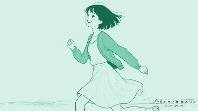 A warm line drawing with a pale coffee brown background and dark brown lines. An Asian woman in her twenties with loose crescent-shaped eyes and soft cheek lines. Her hair is long and loose, reaching down to her chest, with slightly accentuated outward curls. Wearing a simple knit and skirt, she is sitting by the window in a cafe, holding a cup with both hands. Her eyes are directed towards the cup and she has a gentle smile on her face. The composition is centered from the waist up, and the window frame in the background is indicated by simplified lines, creating a soft line drawing style that conveys a sense of warmth and calm.