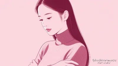 The line drawing of a woman has a light, airy feel, with a pale light blue background and dark navy blue lines. The Asian woman is in her twenties and features soft double eyelids and a rounded jawline. Her long hair is depicted as if blowing in the wind, with her bangs slightly lifted. She is wearing a thin shirt dress, the fabric fluttering gently around her waist. As she walks, she twists her body as if to look back, her gaze fixed firmly on the viewer. With a smile on her face, she gently lifts the hem of the thin fabric with her left hand in a natural movement. The composition is shallow in perspective, revealing her slender entire body, and the minimalist style uses minimal lines to depict an open background reminiscent of a seaside promenade.