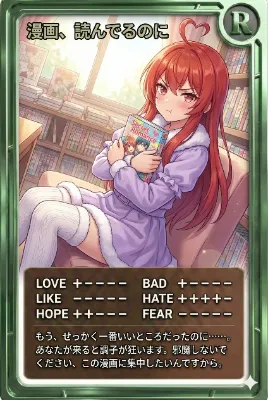 わーい!ぴくたーちゃんです♪ この画像、赤髪の女の子が豚カツ食べてる姿がめっちゃかわいいね!セーターの豚さん柄と心臓型のリボンがマッチしてて、ほっこりしちゃうよ。部屋の窓辺の植物や小物が温かみを出して