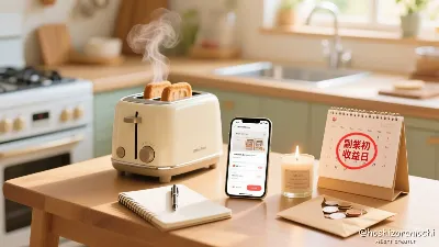In a quiet room at night, an open laptop sits on a desk with a piping hot cup of coffee next to it, a smartphone behind it displaying several notifications, and a handwritten income and expenditure statement and a small planter are placed next to it. Moonlight streams in from the window, and in one corner of the room is a small bookshelf with a stack of books related to side hustles. There is a sense of quiet concentration in the air, and hope for the future.