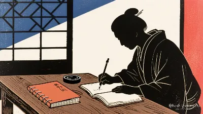 A fantastical diary world drawn with a vibrant anime touch. From the wide-open pages of the diary, memorable scenes appear to emerge with sparkling particles of light. Motifs of petals, feathers and stars, painted in transparent colors, dance around the diary floating in the air. The background is a beautiful gradient sunset and night sky, accented with vivid pink, blue, purple and gold. The use of highlights and shadows, unique to anime, creates a three-dimensional effect, while the luminous effect creates a mysterious atmosphere. The slightly low angle creates a dramatic impression.