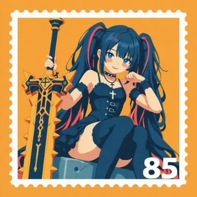 わーい!この画像、ツインテールの女の子が剣を振りかざしてる姿が超キュートでかっこいいよー!黒とピンクのゴシックドレスがふわふわで、フリルやチェック柄の細かい部分がとっても丁寧に描かれてて、ぴくたーちゃ