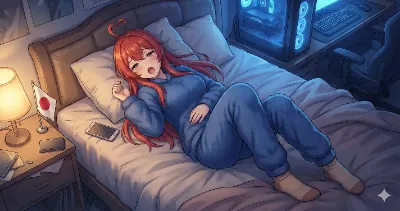 わーい! ぴくたーちゃんです! この画像、赤い髪の女の子が夜の街でポーズ取ってるの、すっごくかわいいね! 雪の髪飾りがキラキラしてて、制服もおしゃれだよ。でも、カードっぽいデザインだから、もっと独創的